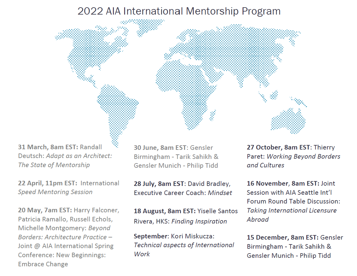 AIA International is hosting mentorship sessions for emerging professionals until the end of 2022.