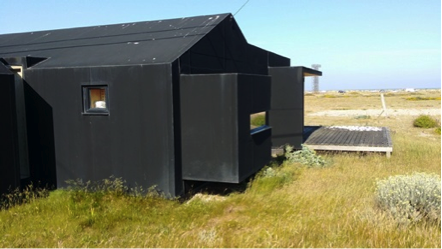 In the middle of Dungeness’s stark, un-English and almost unreal landscape – with its scattered array of fishing net frames; abandoned foghorn testing rigs; derelict fishing boats; kitsch holiday bungalows and caravans; superfluous lighthouses; and the omnipresent, looming (if not threatening) nuclear power station – a group of architects has created a little haven of modern design.