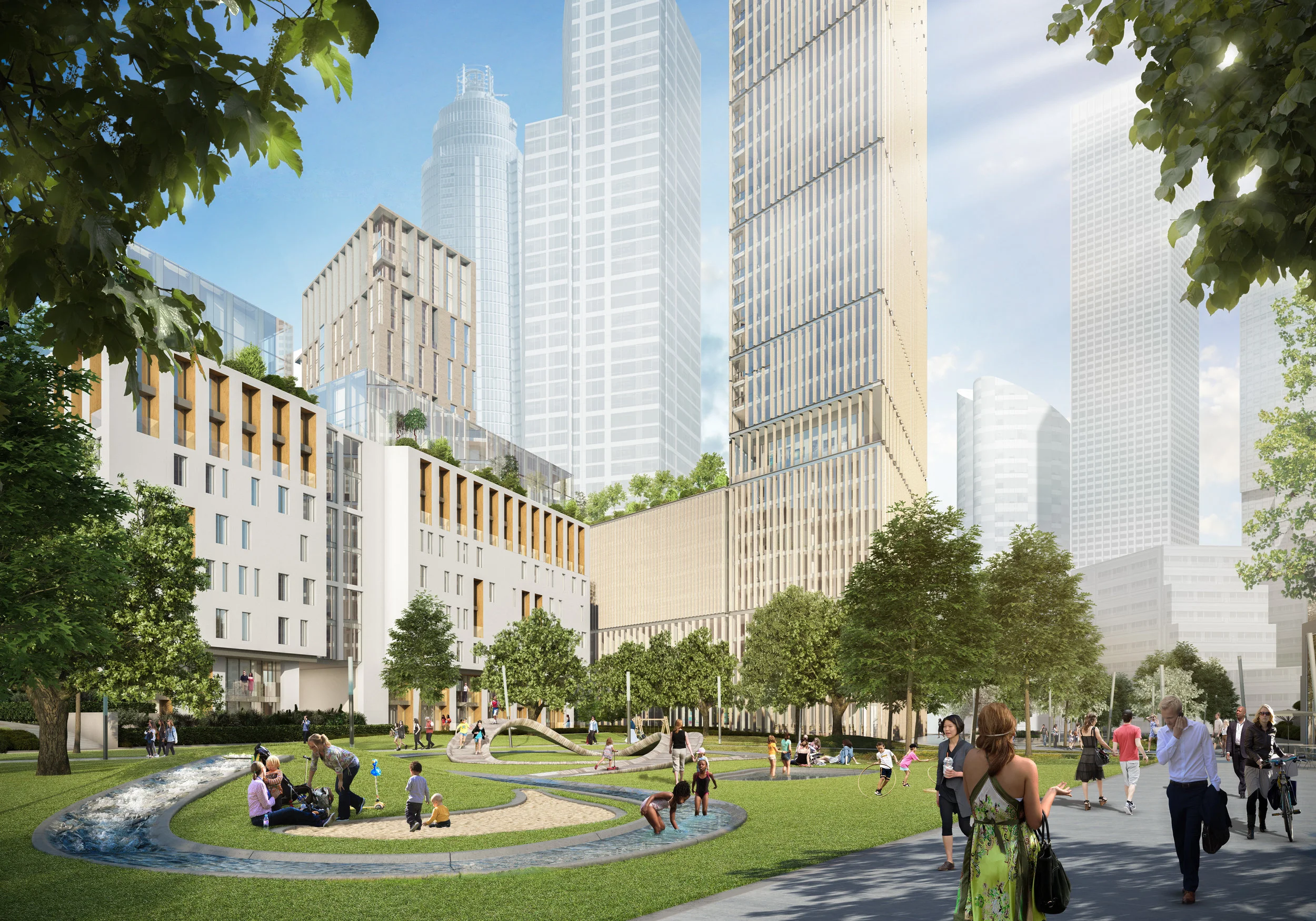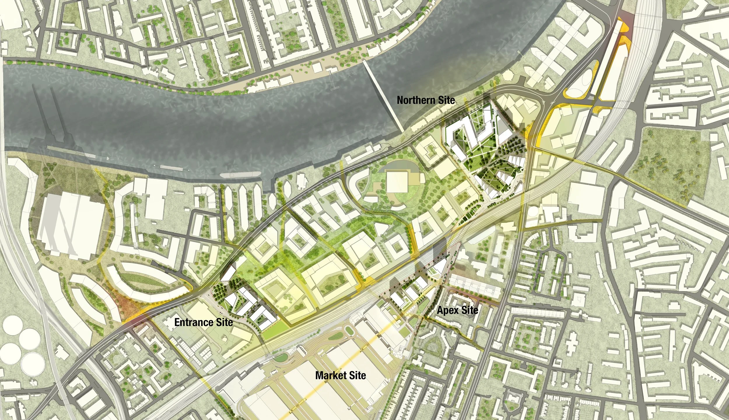 “Our vision for the surplus lands integrates future residential-led mixed-use development into the ever-changing local area. The schemes for the Northern and Entrance Sites will become gateways into the Nine Elms Linear Park, and provide a significant percentage of the district’s future open space network. The project also provides an exemplar for comfort of living and community amenity integrated within high density urban regeneration.”