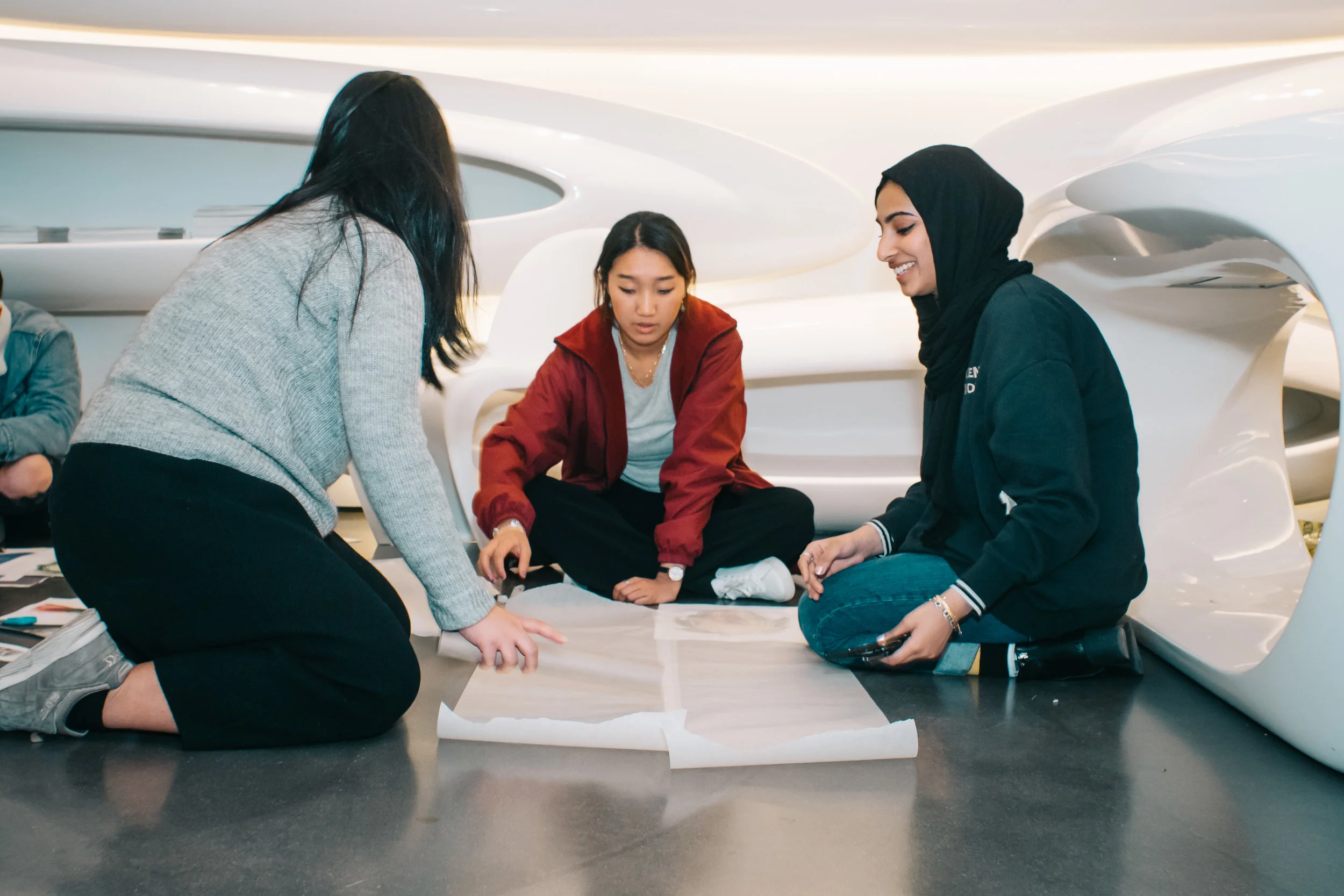 Once a year, visitors to Roca's London Gallery are treated to an unsual sight.The clean lines and flowing geometries of the Zaha Hadid-designed showroom are abruptly broken by unruly piles of paper, cutting mats, and assorted model-making materials. Scattered on all available surfaces, pens roll along the smooth curves of the injection-moulded countertops and shelving. At the centre of each pile of materials is a small group of students, huddled together, lying down, or draped across all manner of high-end sanitaryware.