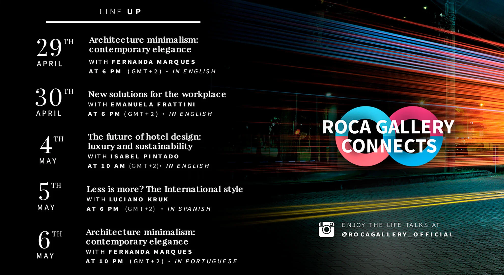 Roca’s global channel www.rocagallery.com which shares articles on news, trends, best practice will be broadcasting new series of interviews with renowned professionals though IG live.