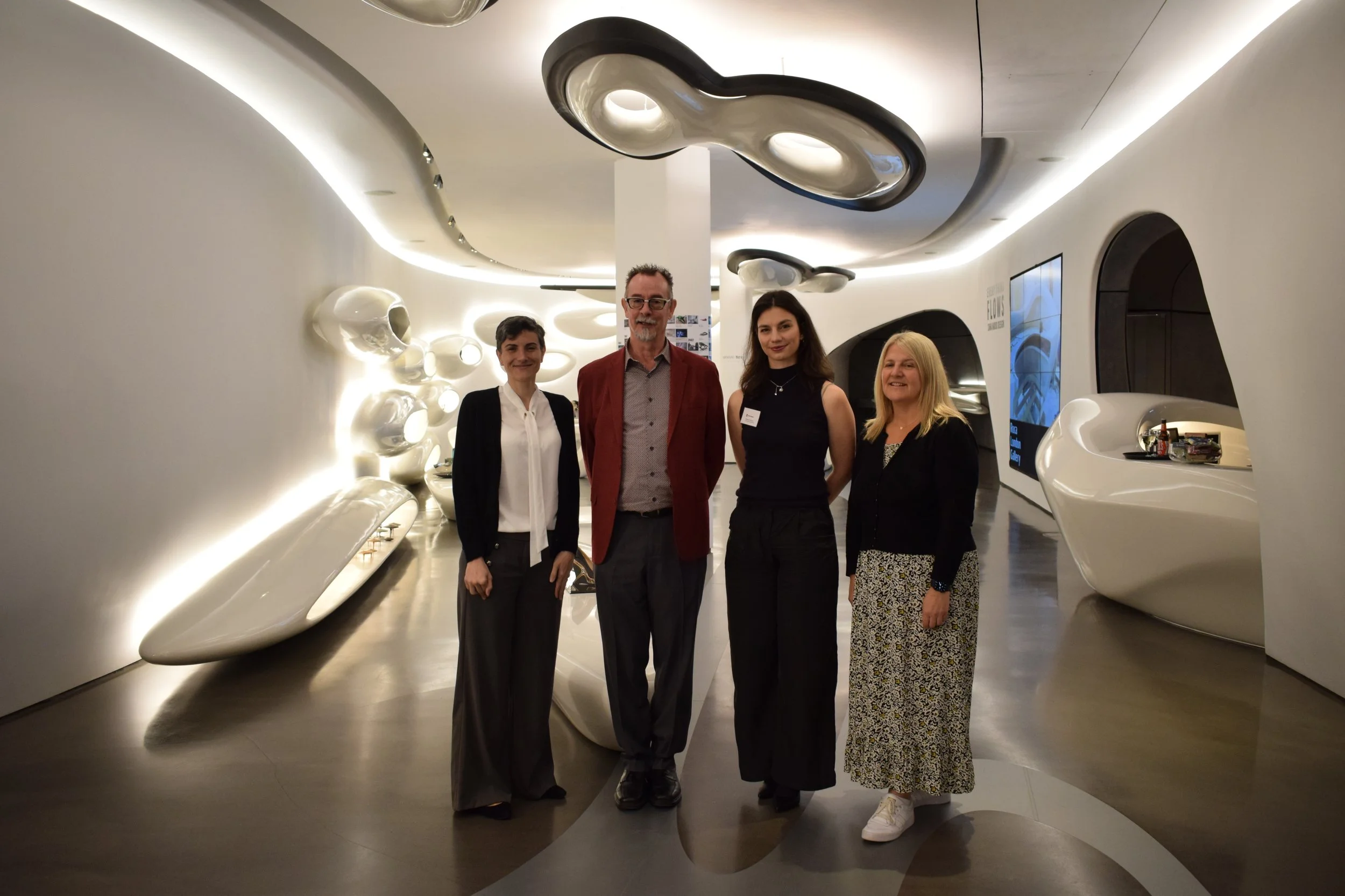 The speakers and event organizer. Pictured from left to right: Patricia Ramallo (NCARB), Harry Falconer (NCARB), Adelina Koleva (AIA UK Emerging Professionals), Emma Matthews (ARB). Photo courtesy of Roca London Gallery.
