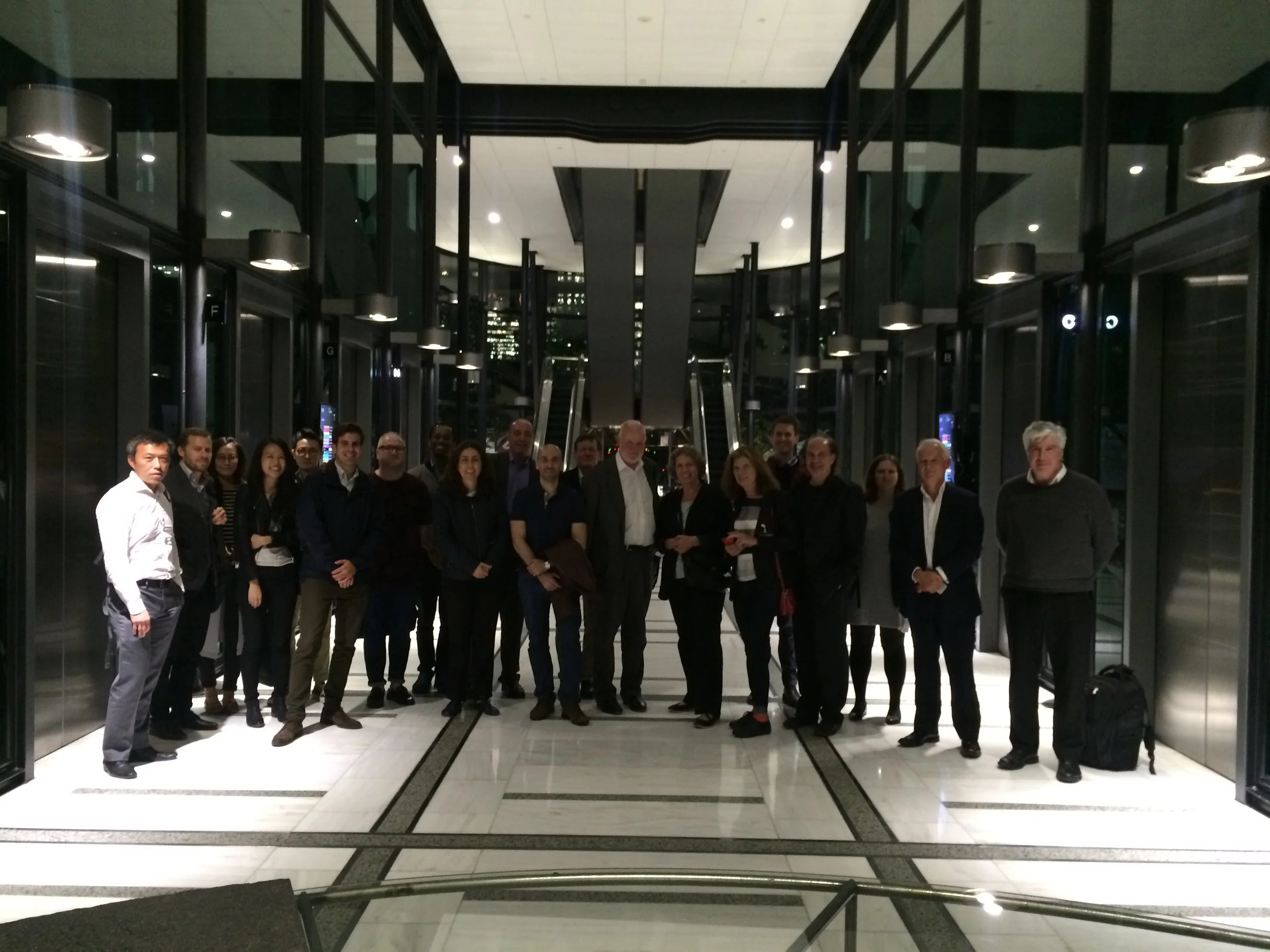 AIA/UK gathered at Skidmore Owings & Merrill’s London office on the 20th of September to celebrate the 2015 AIA 25-year award given to Exchange House. The evening featured a presentation on the project by Kent Jackson, Dmitri Jajich, and Graham Wiseman, all of SOM representing the architectural, structural and master planning aspects of the multidisciplinary design. The group then visited Exchange House (adjacent to SOM’s office), including a tour of the lobby, award plaque recently installed on the building , and drinks in Exchange Square.