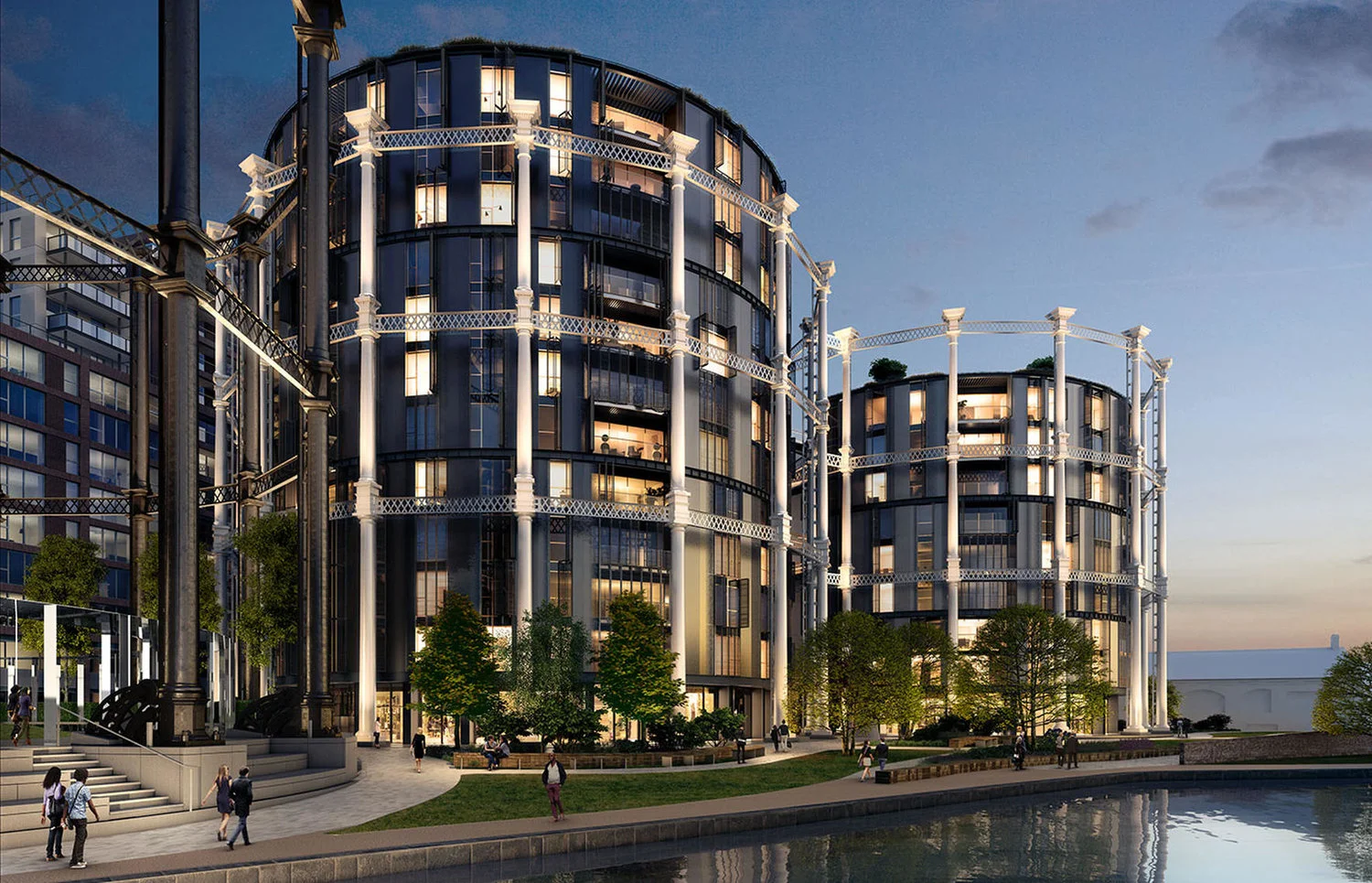 The Gasholder project is the "jewel in the crown" for developer Argent and provides the developments high end luxury residential offer. The estimated construction cost for the three buildings is circa £125m. This figure includes £16m for the restoration of four gasholder structures. Studio apartments start at £800,000 and prices rise to over £10m for a three bed penthouse.